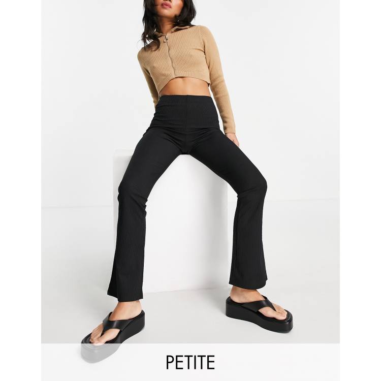 Topshop Petite skinny rib flared pants in black ShopStyle