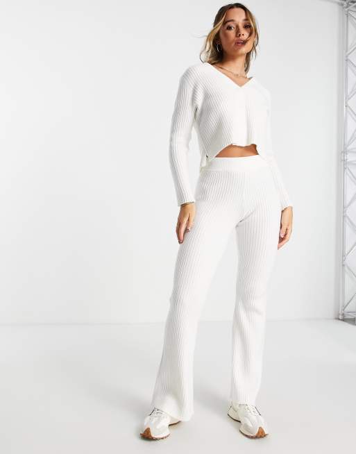 Off White Jersey Foldover Waistband Skinny Flared Pants