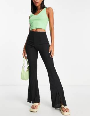 New clearance look flares, Black Floral Crinkle Jersey Flared Trousers New Look clearance