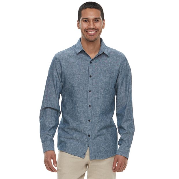 Men s Marc Anthony Slim Fit Linen Blend Button Down Shirt