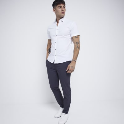 White Short Sleeve Tapered Fit Shirt Fitted Shirts Tapered