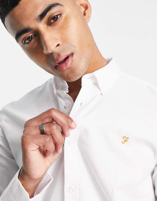 Farah Brewer cotton slim fit oxford shirt in white ASOS