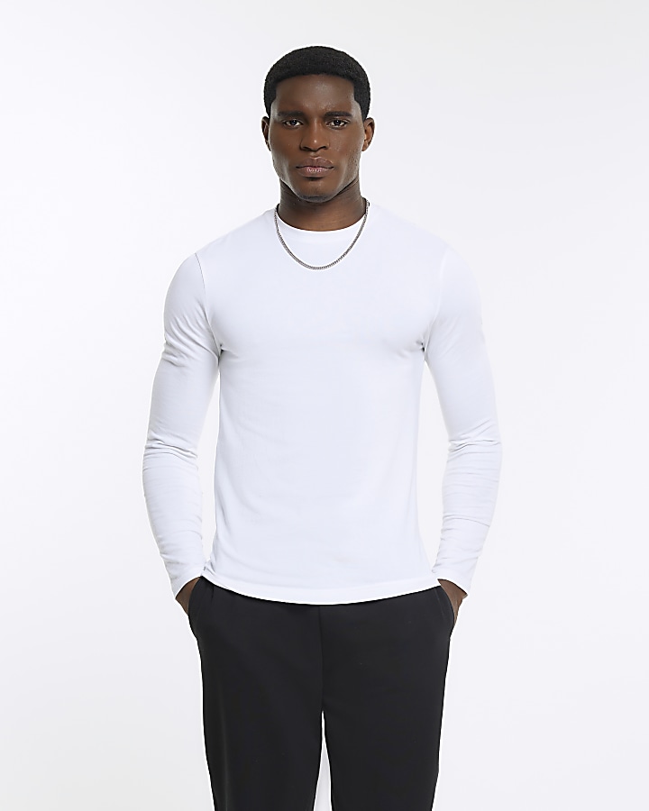 Muscle fit white clearance long sleeve shirt, Buy Long sleeved slim fit T shirt Online in Dubai the UAE Kiabi clearance