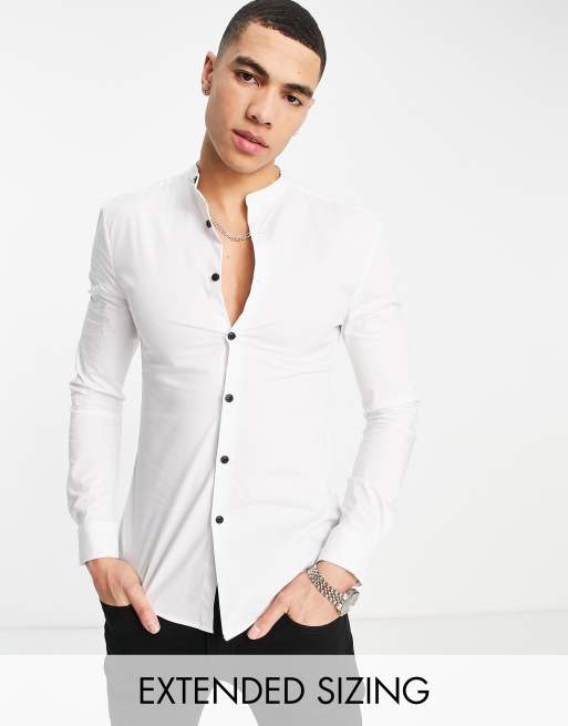 ASOS DESIGN super skinny muscle fit shirt with contrast buttons in white