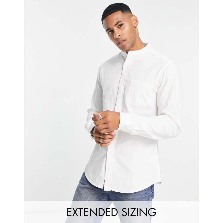 ASOS DESIGN slim fit oxford shirt with grandad collar in white ASOS