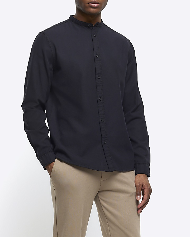 Black slim fit clearance grandad collar shirt, Slim Fit Stretch Cotton Grandad Collar Shirt clearance