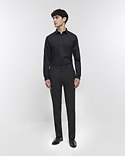 Slim clearance smart trousers, Men s Slim Fit Basic Formal Trouser Black clearance