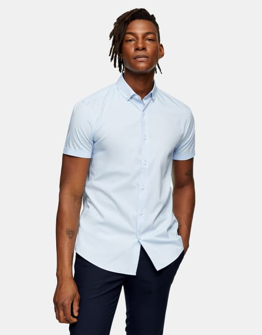 Topman stretch skinny shirt in light blue