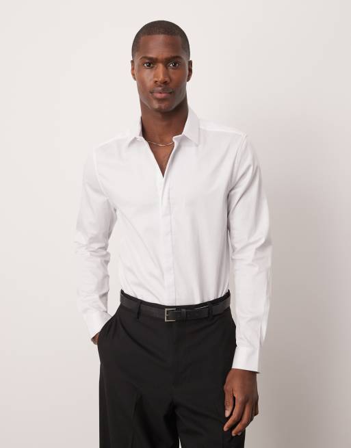 ASOS DESIGN formal skinny fit oxford shirt with double cuff in white