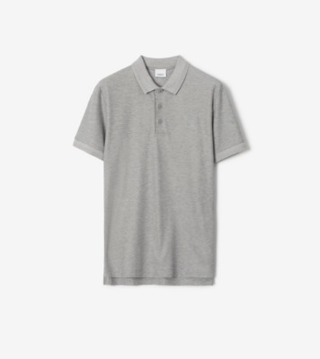 Cotton Polo Shirt in Pale grey melange Men Burberry Official