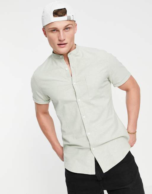 ASOS DESIGN slim fit oxford shirt with grandad collar in mint ASOS