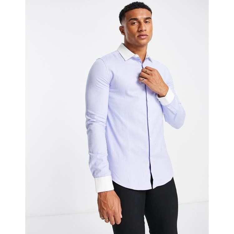 ASOS DESIGN stretch slim fit work shirt in lilac