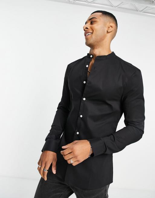ASOS DESIGN muscle fit shirt with grandad collar in black ASOS