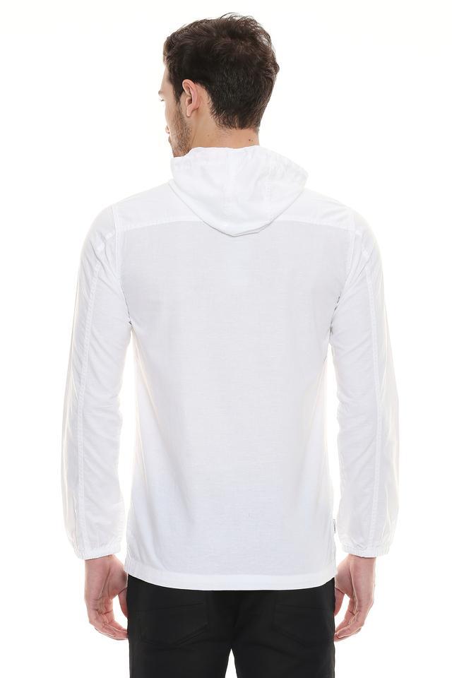Mufti Men White Slim Fit Solid Casual Hooded Shirt