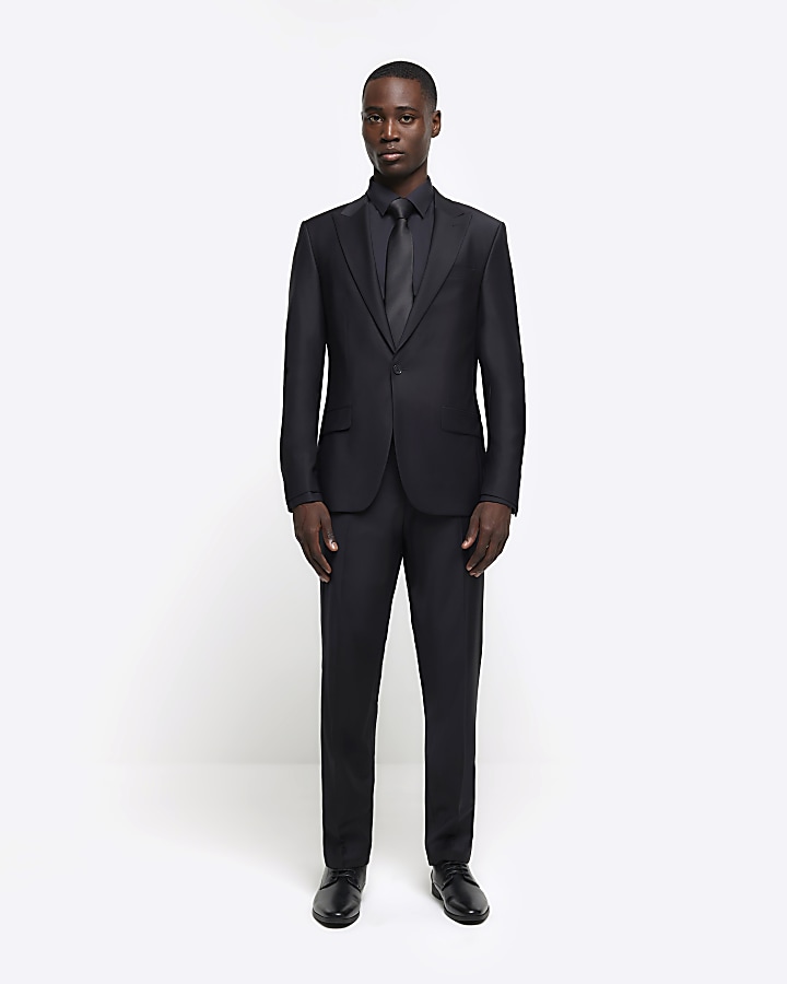 Mens skinny fit clearance tuxedo, Black skinny fit wool premium suit trousers River Island clearance