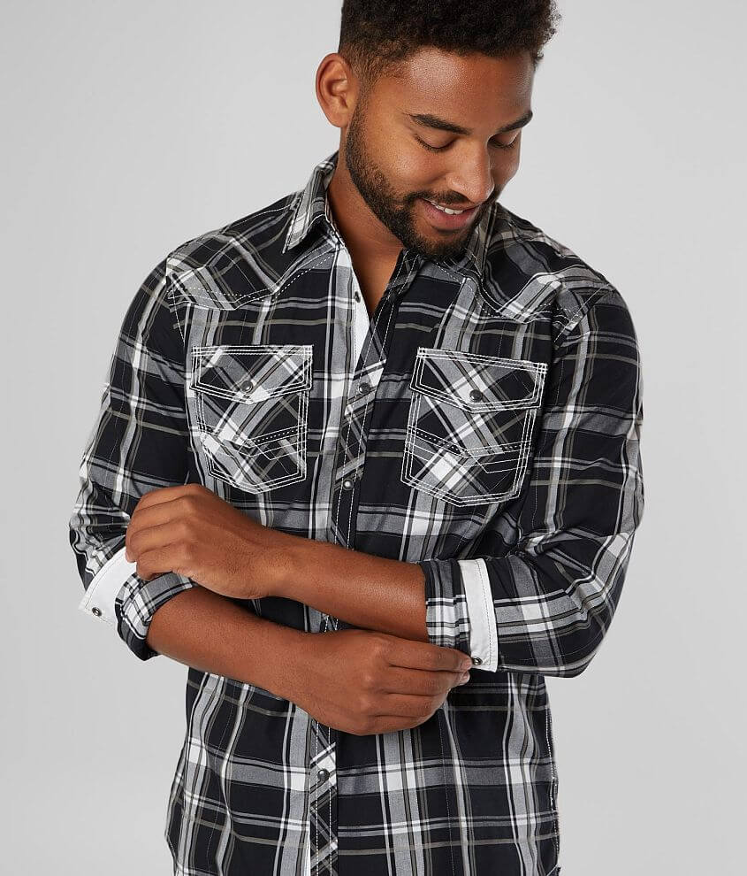 BKE Plaid Athletic Shirt Men s Shirts in Black White Buckle