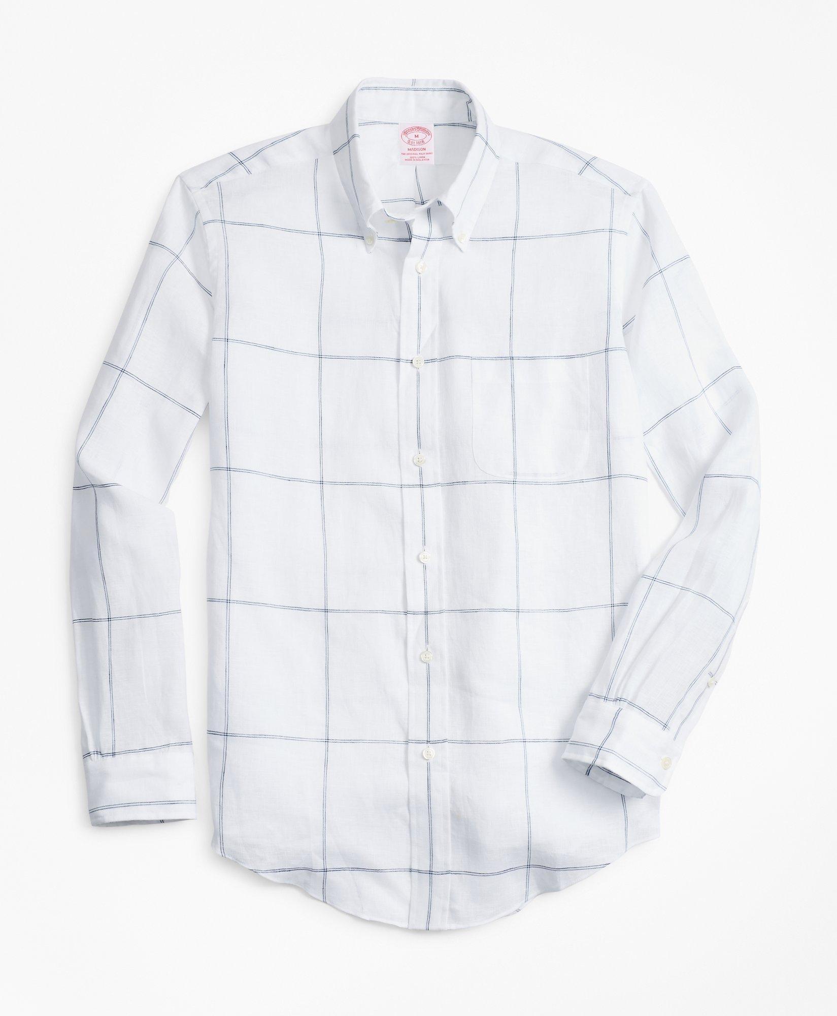 Madison Relaxed Fit Sport Shirt Large Windowpane Irish Linen