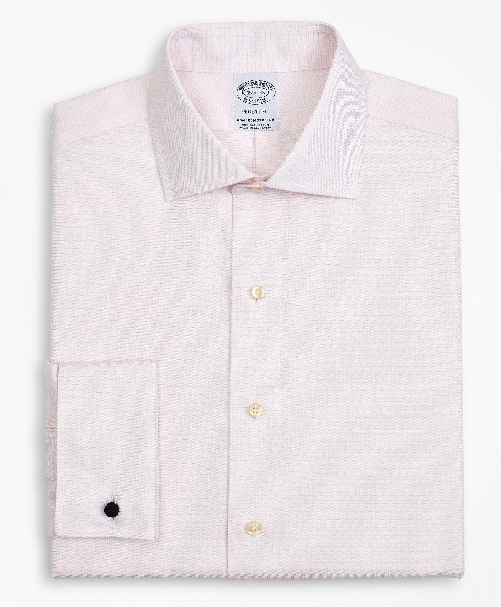 Stretch Regent Regular Fit Dress Shirt Non Iron Twill English Collar French Cuff Micro Check