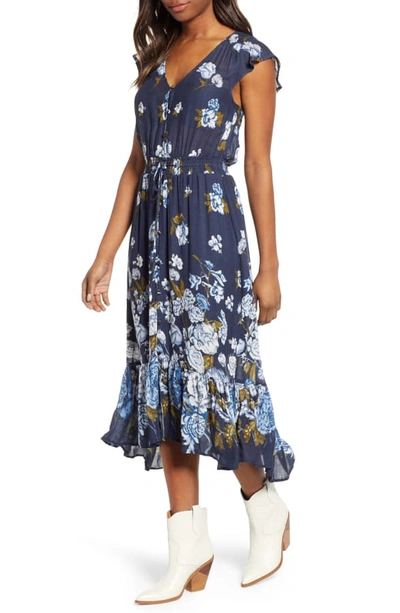 Lucky brand felice clearance floral dress, Lucky Brand Flutter Sleeve Midi Dresses Mercari clearance