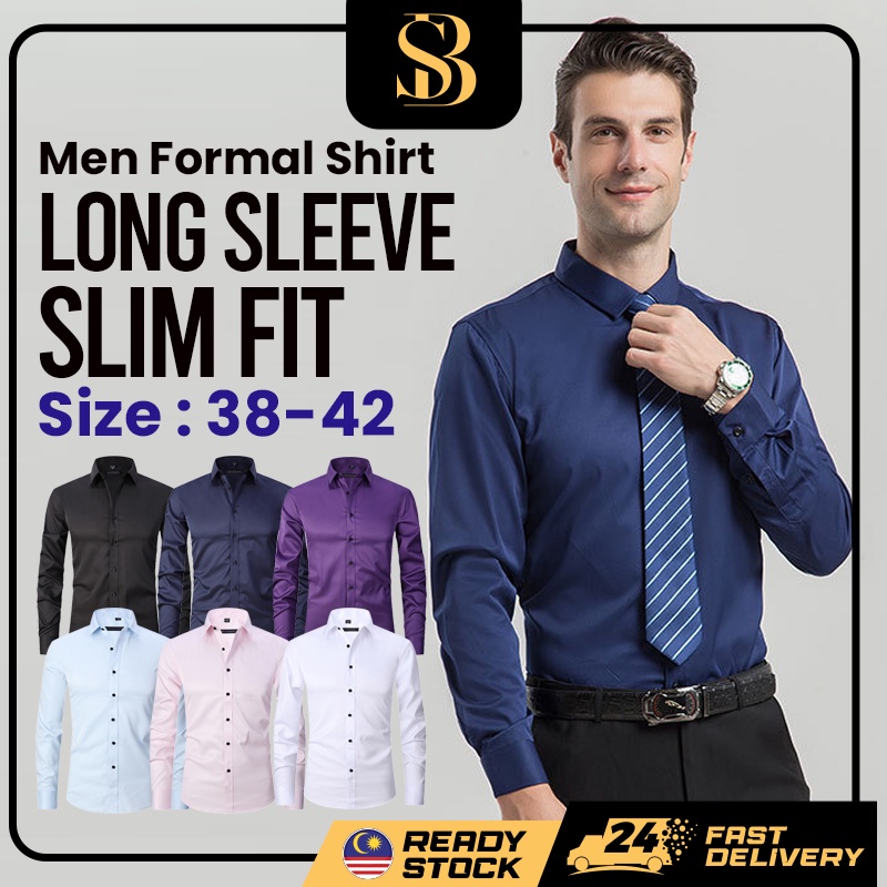 Slim fit 42 clearance size, BOSC Baju Kemeja Lelaki Men Shirt Long Sleeve Slim Fit Suit Shirts clearance