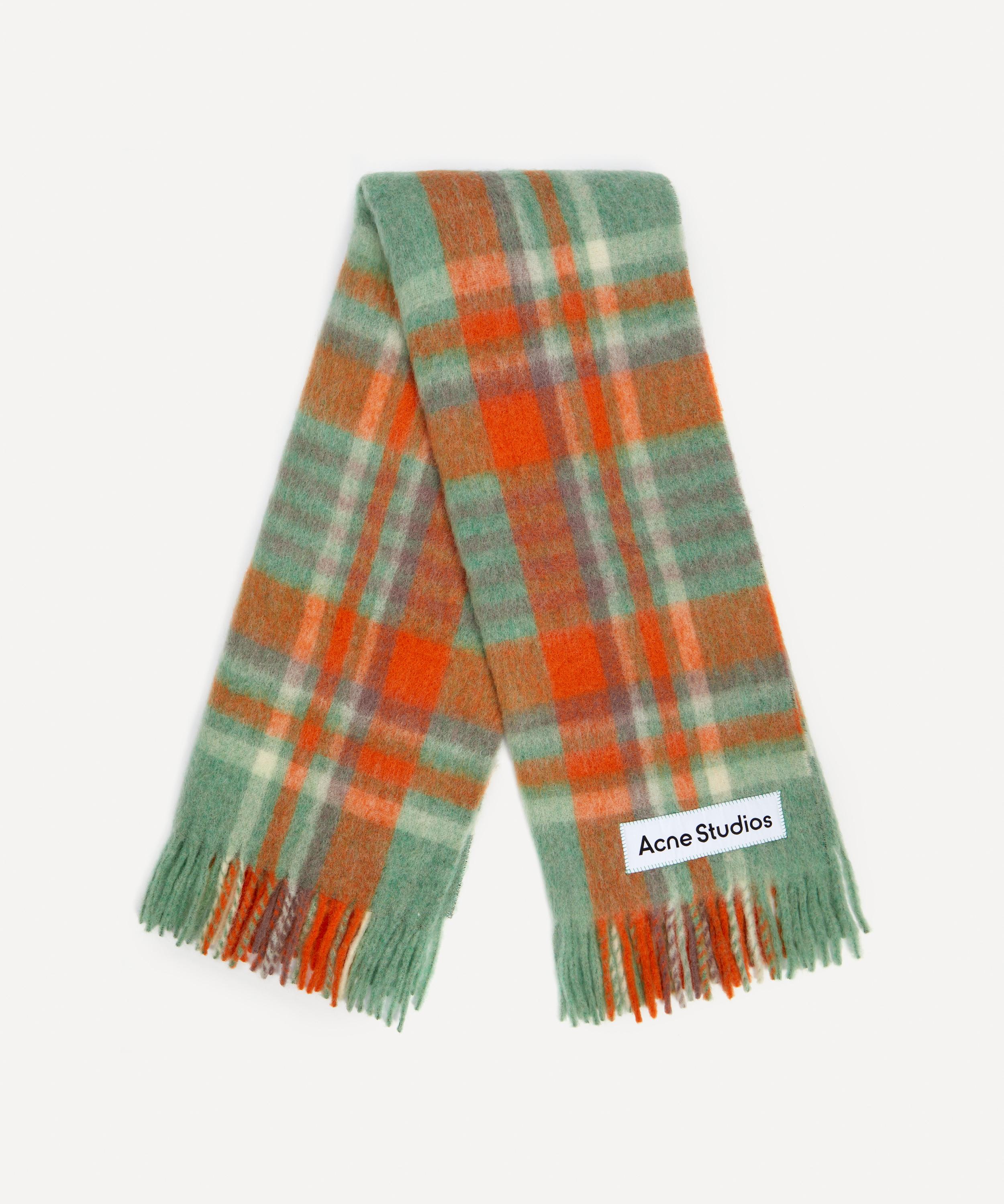 Acne studios cassiar clearance check scarf, Acne Studios Cassiar Logo print Checked Virgin wool Scarf Yellow clearance