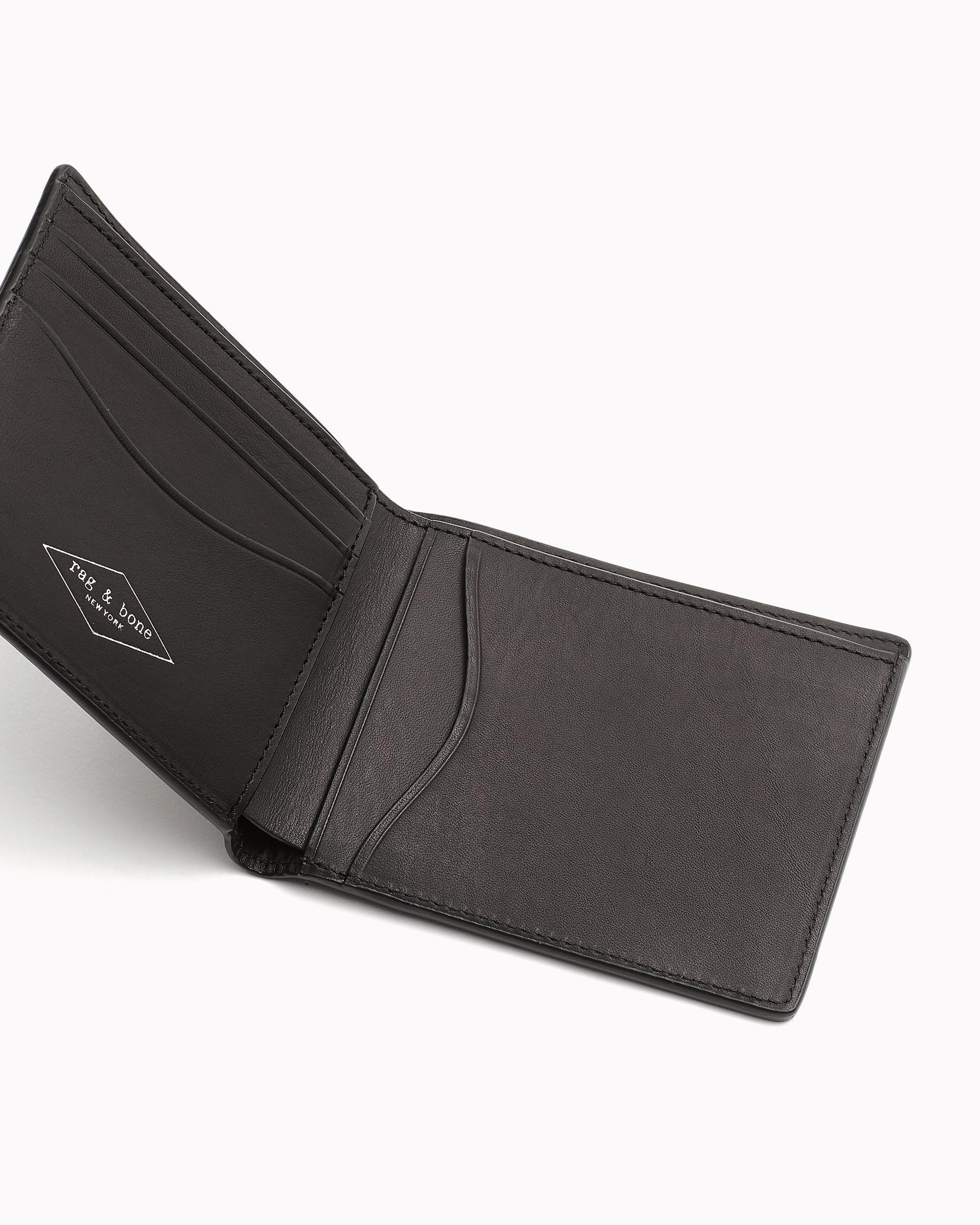RAG BONE RARE MATTE BLACK BRIDLE LEATHER ORANGE TRIM MENS BIFOLD WALLET NEW