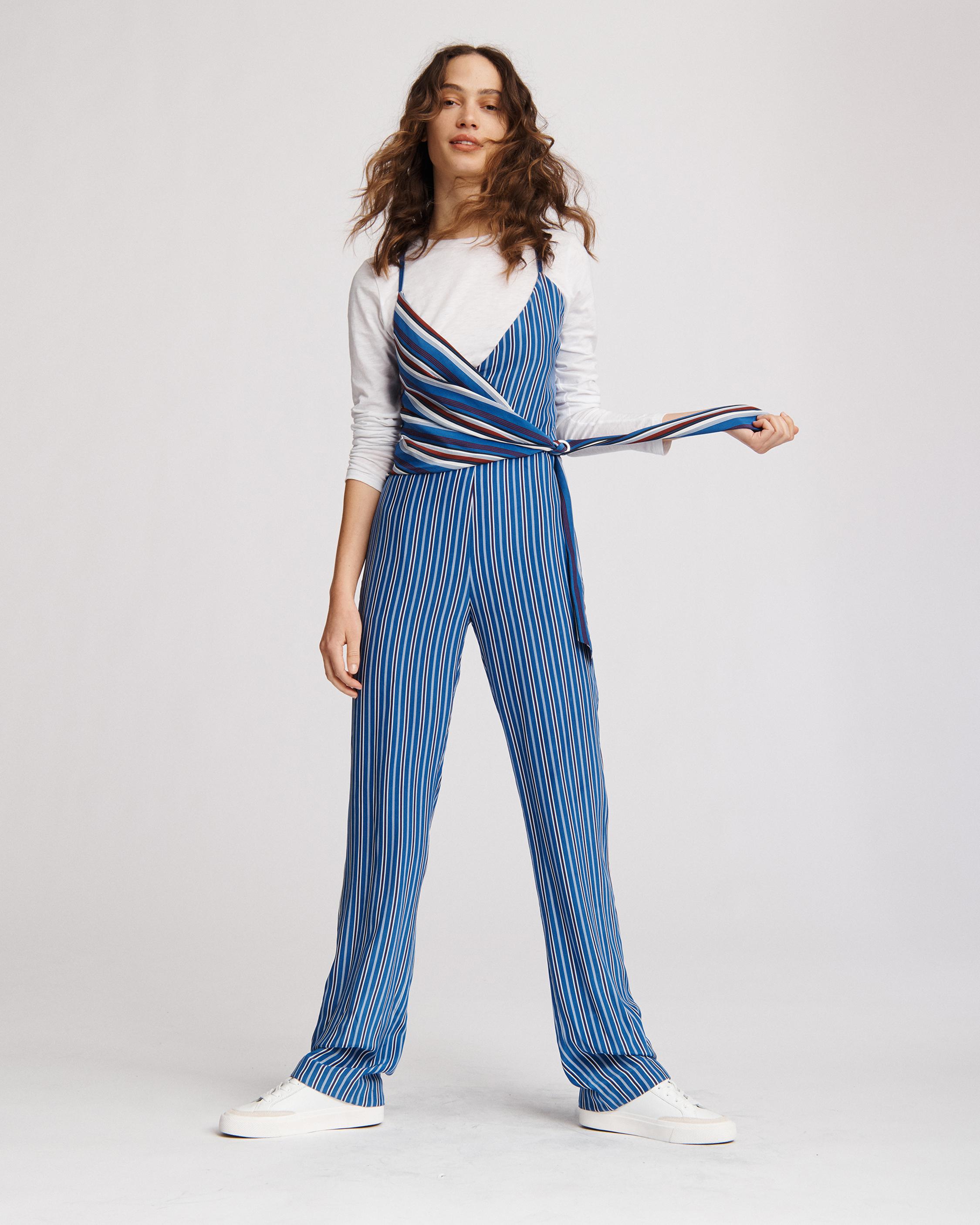 Rag Bone Felix Mixed stripe Sleeveless Wrap Jumpsuit In Blue