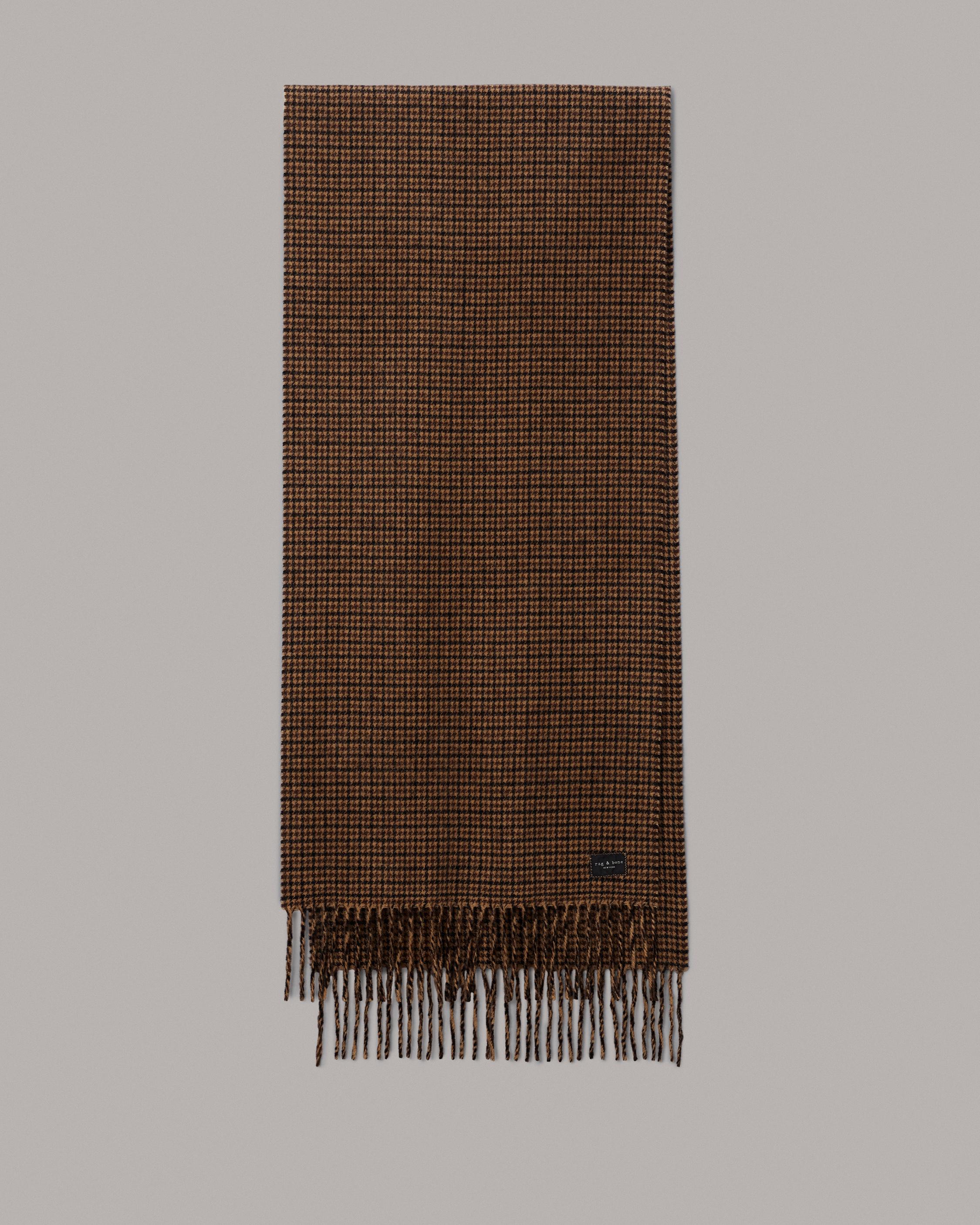 Addison Heritage Skinny Recycled Wool Scarf Brown Houndstooth