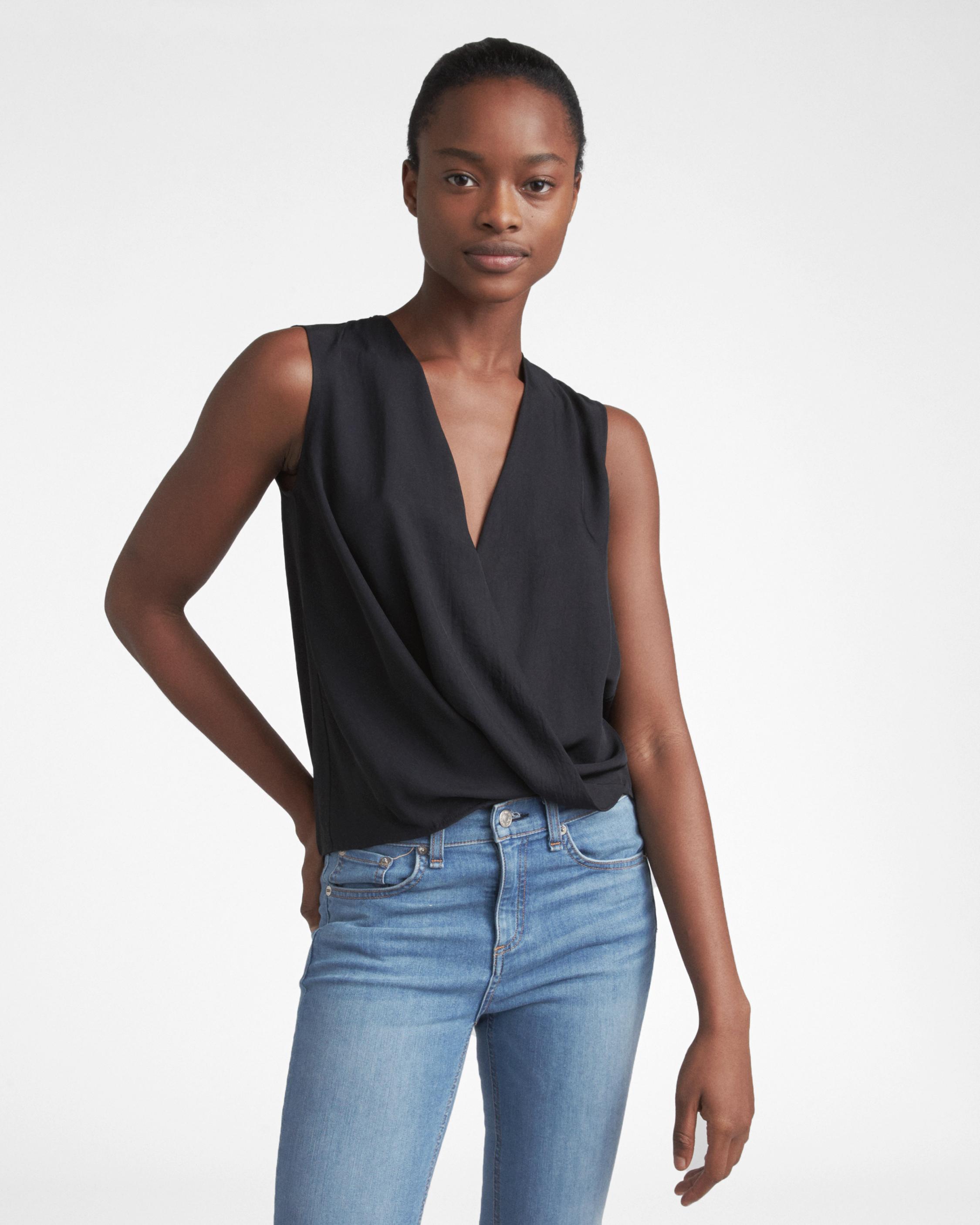 White Rag and Bone V Neck Victor Silk Wrap 100 Silk Blouse eBay