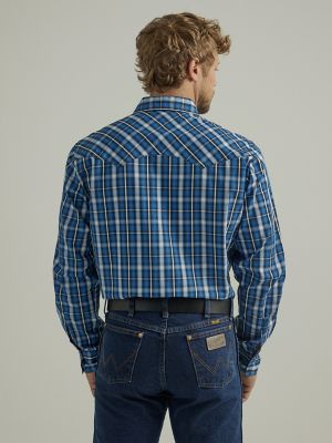 Wrangler Men s Cowboy Cut Blue Firm Finish Long Sleeve Western
