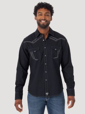 Men s Rock 47 by Wrangler Long Sleeve Embroidered Yoke Solid