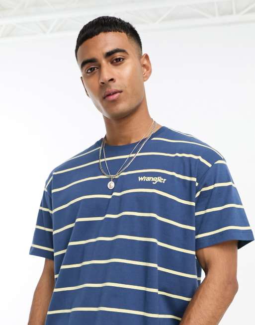 Wrangler short sleeve striped T shirt in Della Robia blue