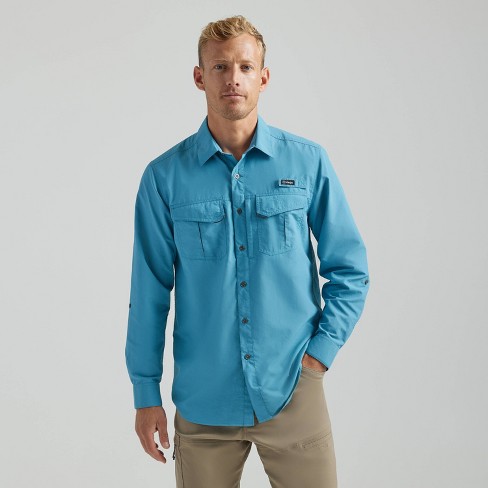 Wrangler Men s ATG Long Sleeve Fishing Button Down Shirt Teal Green S