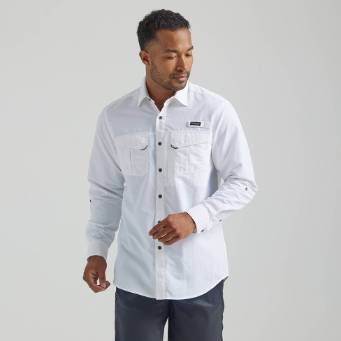 Wrangler Men s Atg Long Sleeve Fishing Button down Shirt White