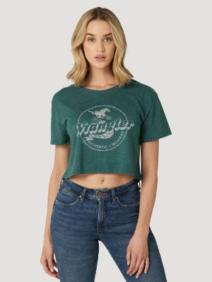 Wrangler clearance crop tee, Wrangler Women s Wrangler Galloping Boyfriend Crop Tee Junebug clearance
