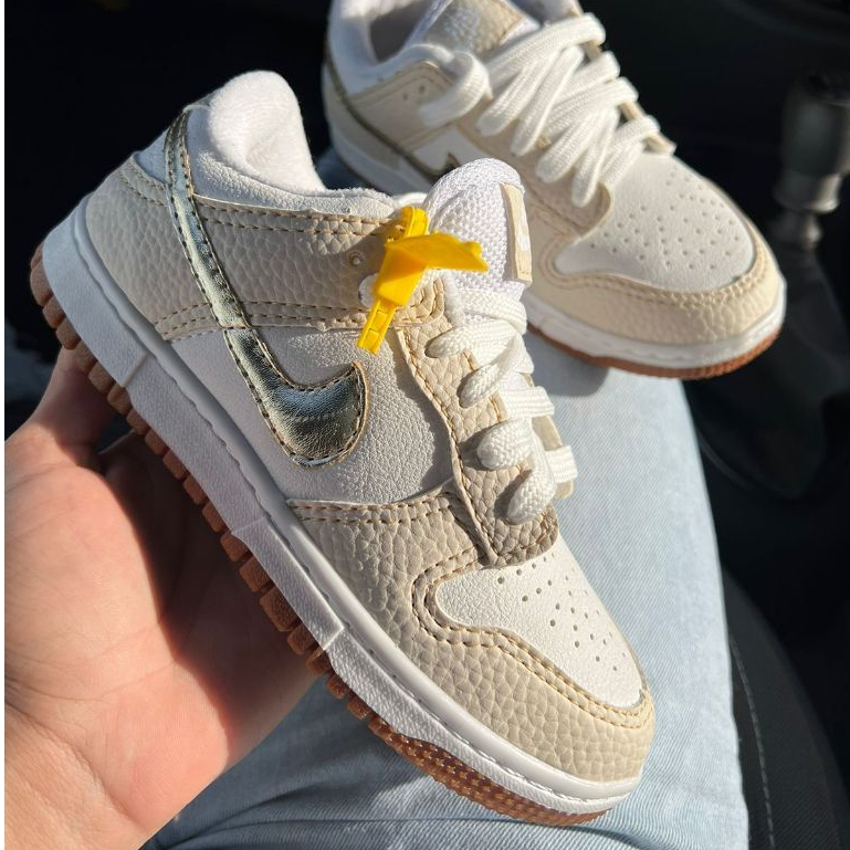 Tenis Nike Dunk Low Infantil Branco Dourado lan amento 2 cadar os