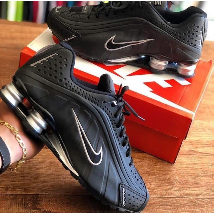 T nis Nike Shox R4 Nz 4 Molas Masculino Cinza Preto Branco