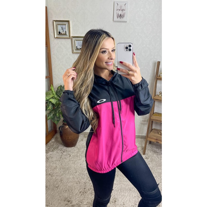 Jaquetas Corta Vento Olho de Gato Feminina Pink Blusas de Frio Casacos 02 Bolsos Lateral Capuz