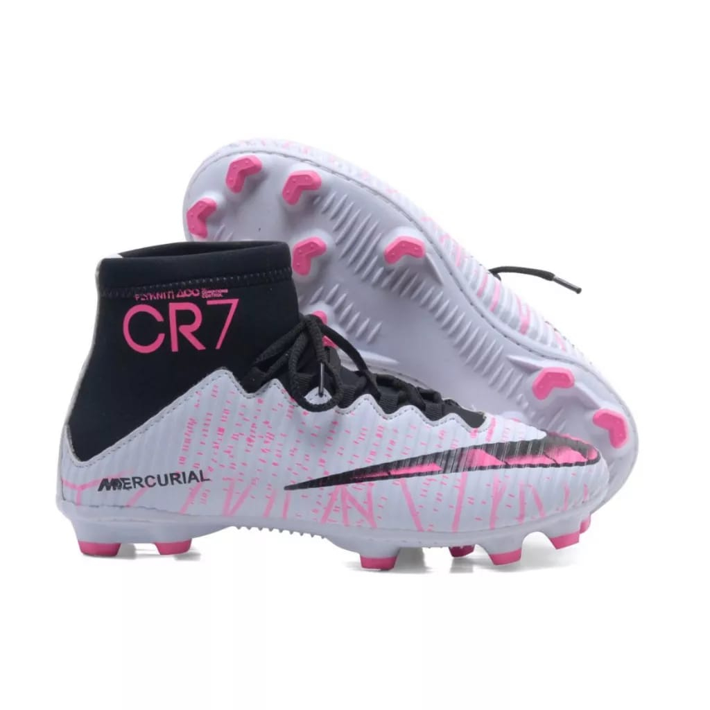 Chuteira Nike Phantom GT Cano alto campo branco rosa