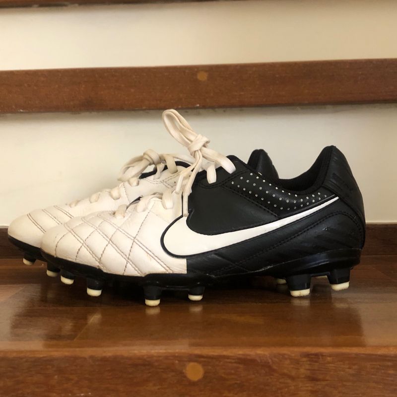 Chuteira Nike Tiempo Campo Preta e Branca Infantil Cal ado