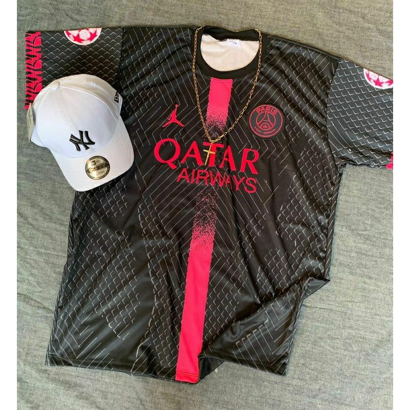 Camisa camiseta de time do PSG preta e rosa 22 23 esporte home top new esporte futebol masculino