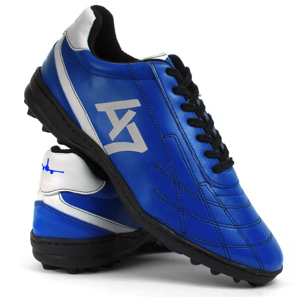 Chuteira de Campo Mathaus Couro Masculino Tamanhos Especiais 45 ao 48 Azul