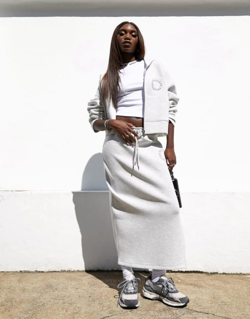 Nike air force clearance midi, ASOS Weekend Collective scuba midi skirt and hoddie in grey marl clearance