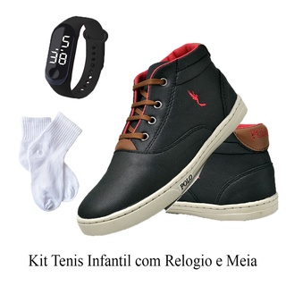 T nis Masculino Infantil Juvenil Menino Polo Blu com Rel gio Digital e Meia do 27 ao 36