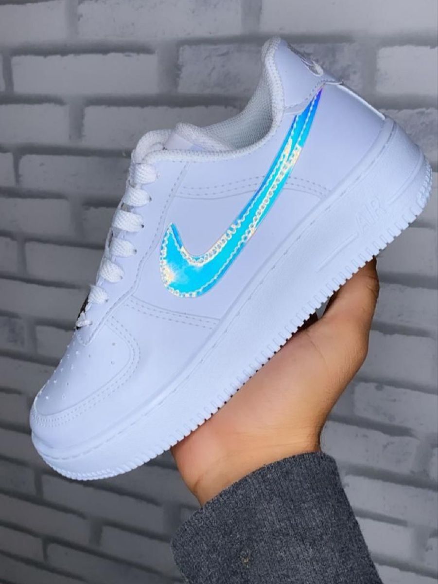 T nis Nike Air Force Branco Hologr fico Novo Na Caixa Lindo Confort vel T nis Feminino Nike Nunca Usado 45731583 enjoei