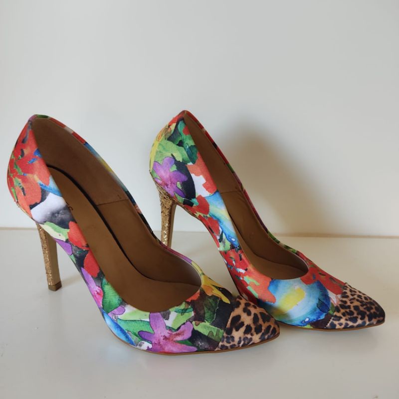 Salto Scarpin Estampado com Salto de Glitter Shopee Brasil