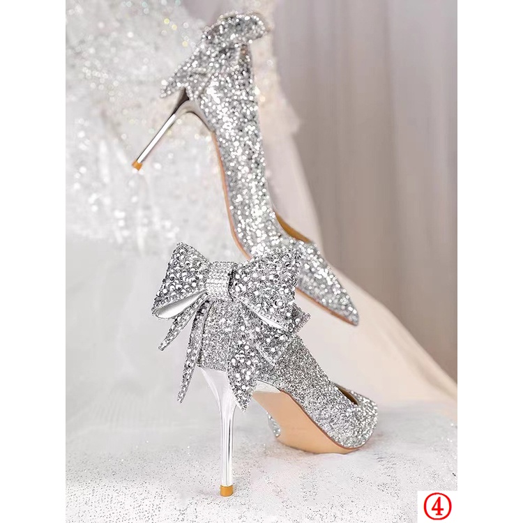 Sapatos De Casamento De Salto Alto Noiva Com Ponta De Prata Stiletto Crystal Principal Normalmente Podem Usar Dama De Honra Sequenciados