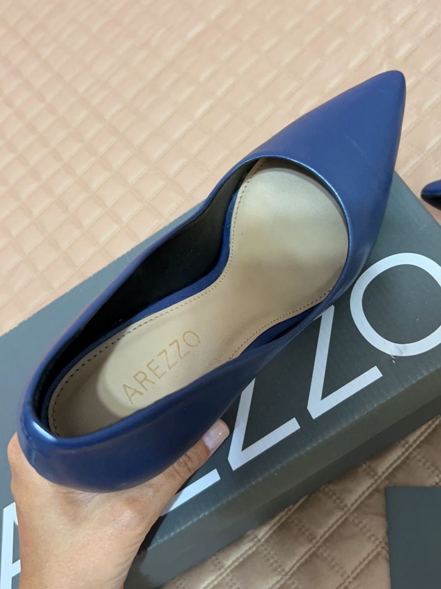 Scarpin azul marinho clearance arezzo, Scarpin Preto Couro Salto Baixo La o Soft Arezzo Arezzo Bras lia clearance