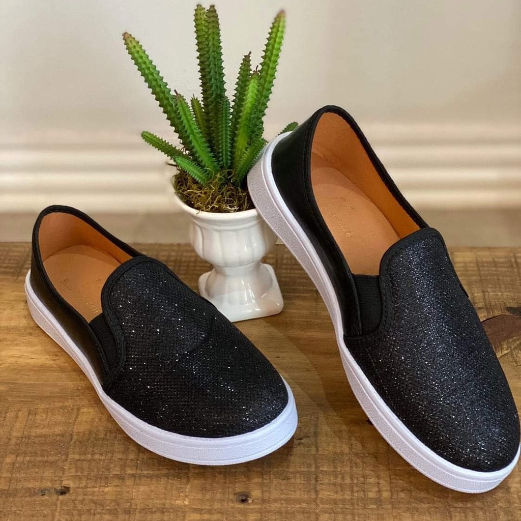 Tenis Feminino Sapatilha T nis Casual Slip on Iate Brilho Sapato