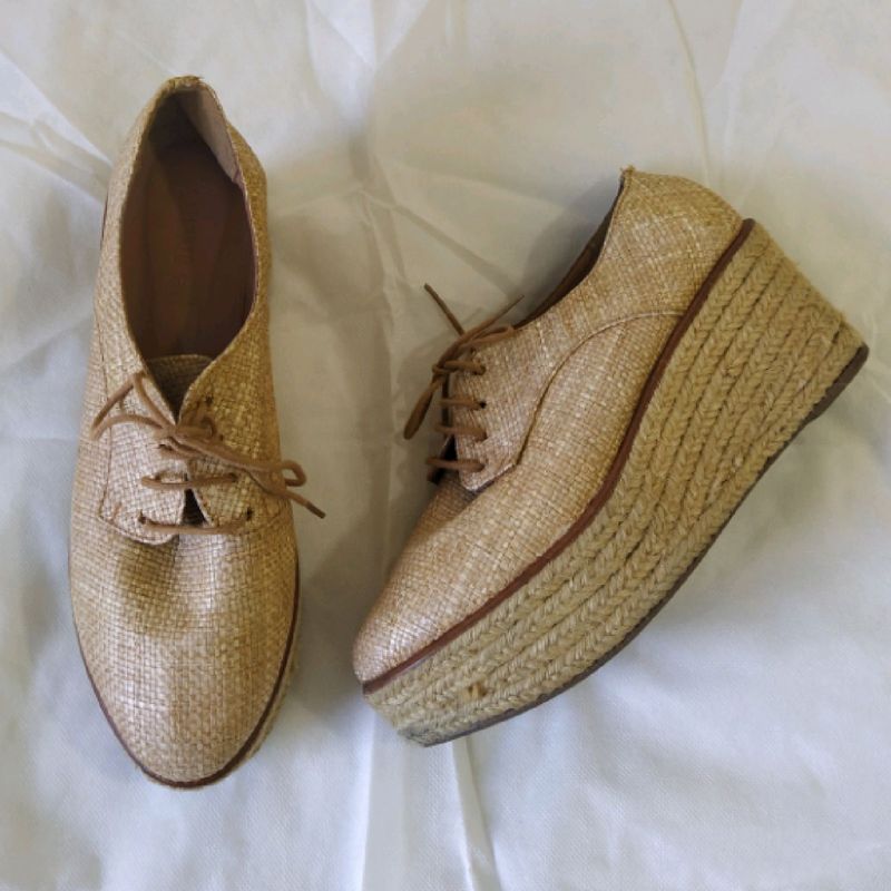 Sapato Flatform Palha Satinato Sapato Feminino Satinato Usado